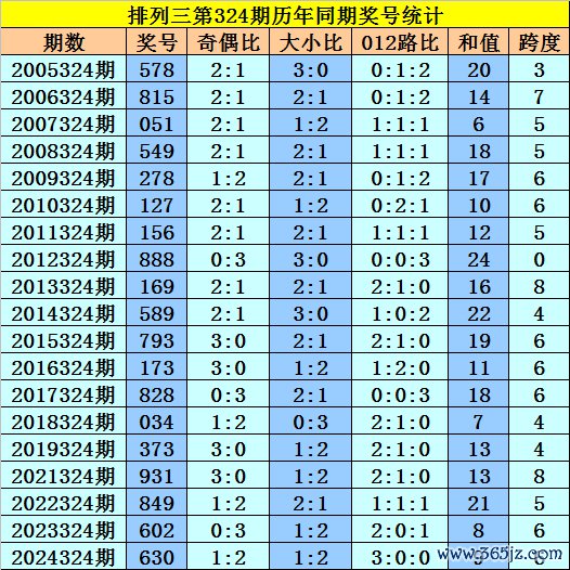 本期为成列三第2025324期开奖,历史上成列三第324期已开出了19期奖号了: